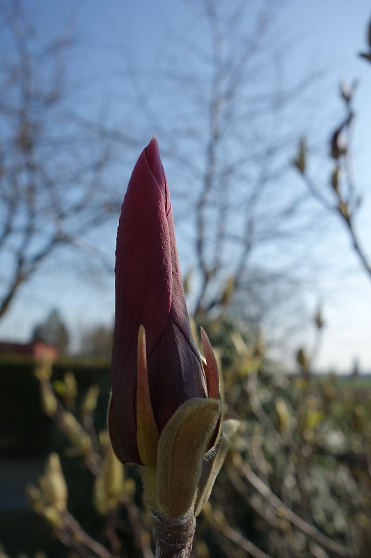 Odnalazłam wcześniejsze zdjęcia. Pierwsze pąki magnolia Susan zaczęła otwierać 04.04.2020 r: