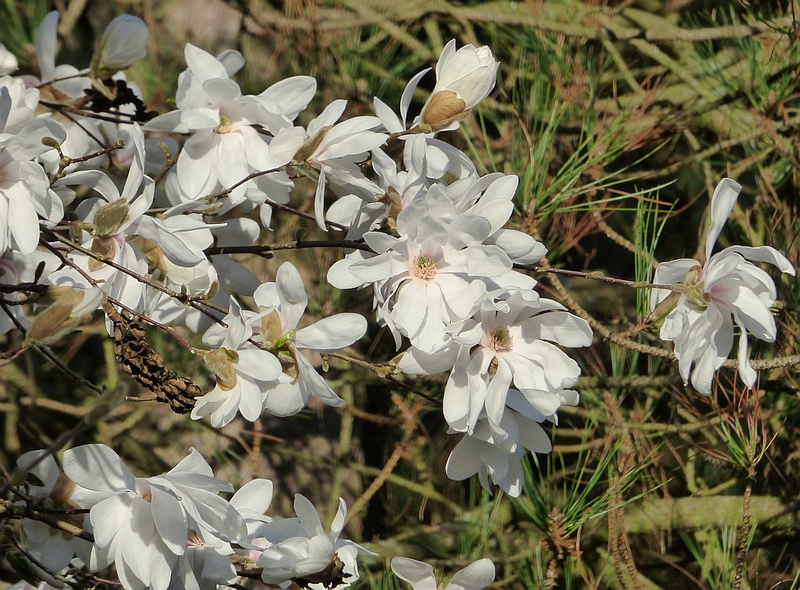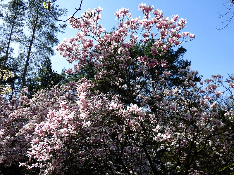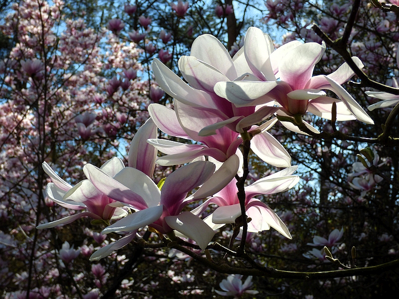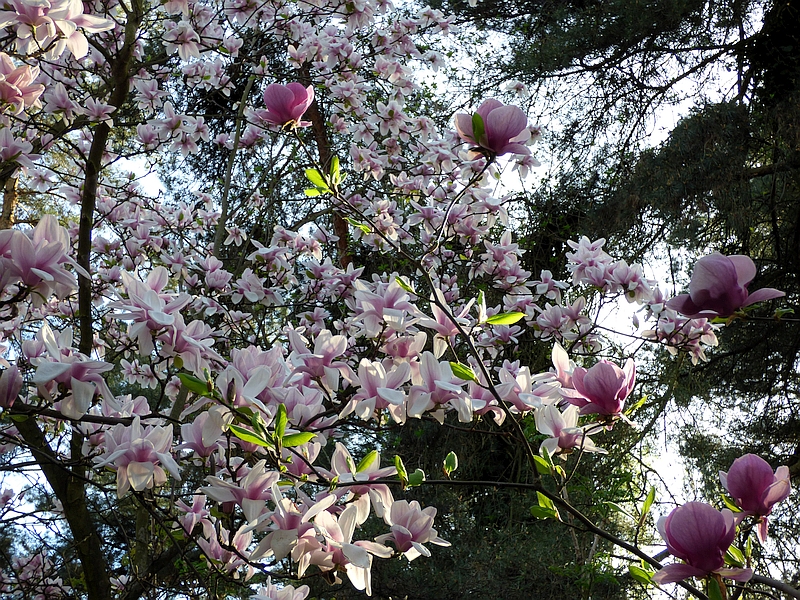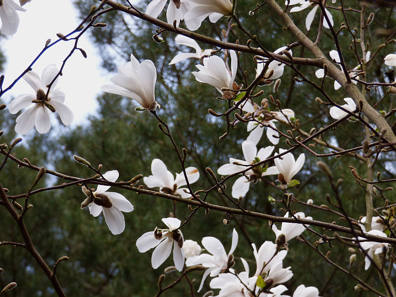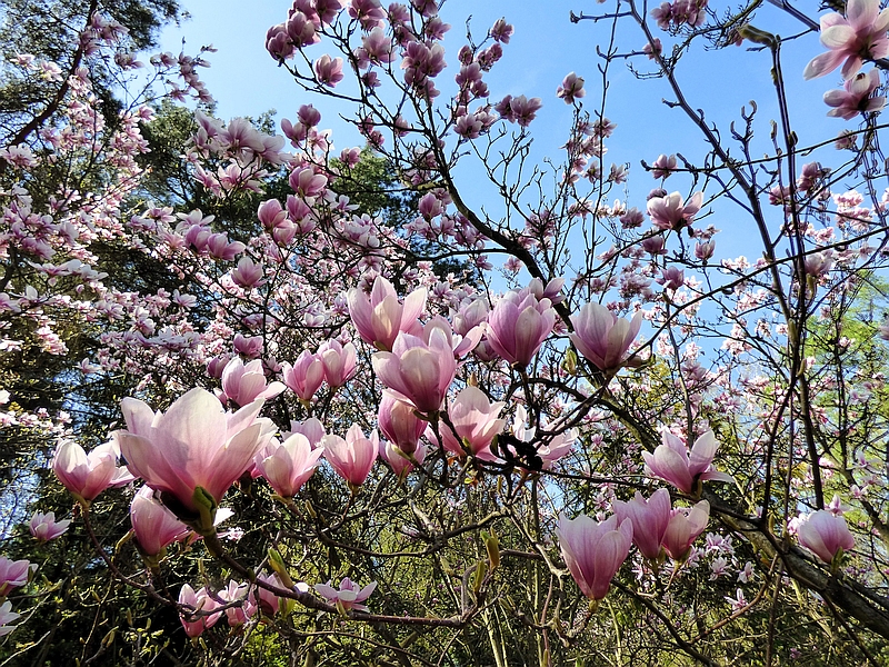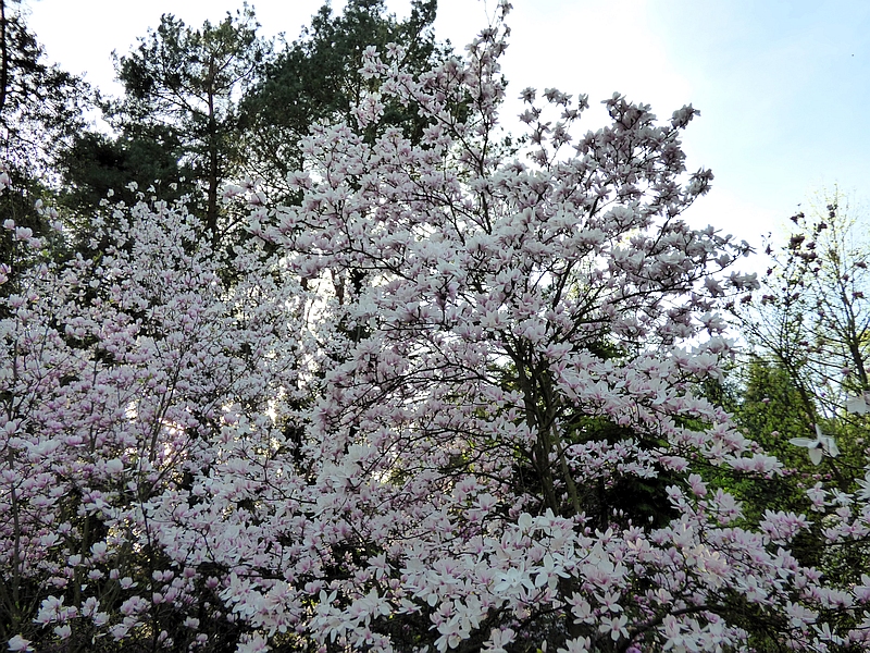 Potem zajrzałam 3.04 - kwitły na potęgę magnolie japońskie, gwiaździste, wierzbolistne oraz magnolia 'Galaxy'... magnolie Soulange'a - a jest tu ich cała kolekcja - jeszcze trzymały pąki