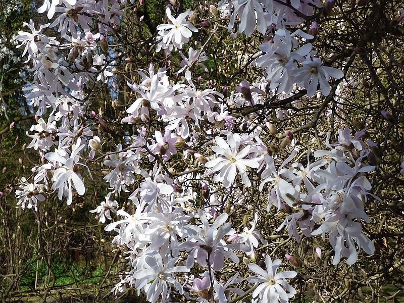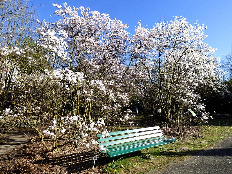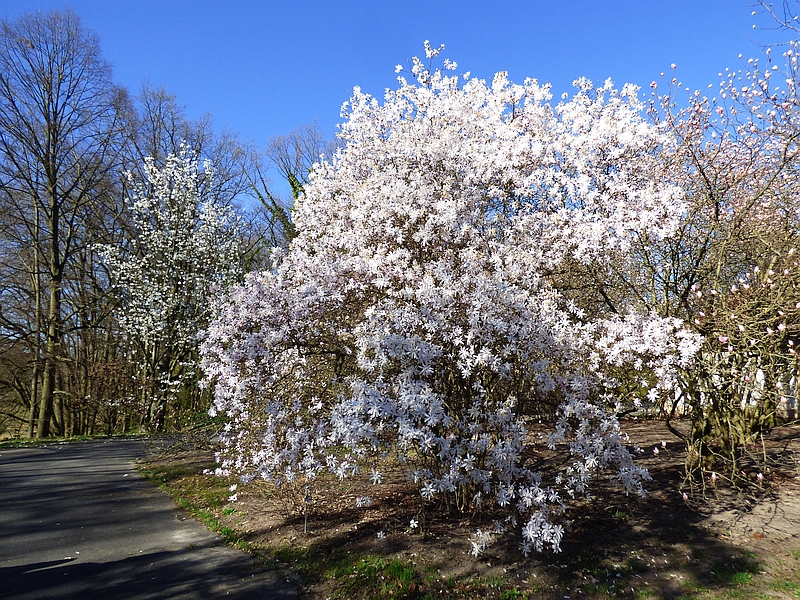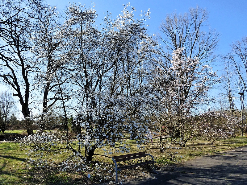W 2019 roku byłam 10.04 - kwitły magnolie japońskie, gwiaździste, wierzbolistne, walcowata... magnolie Soulange'a w pakach... byłam również 14.04 - gwiaździste w dużej części łapały już zbrązowienia... odwiedziłam też zakątek, gdzie rośnie 8 małych dziewczynek - były w pąkach