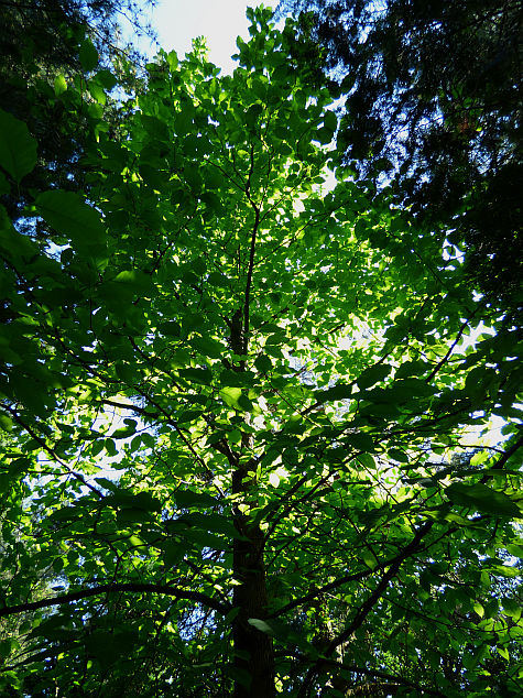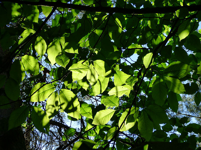 Magnolia drzewiasta w OB PAN w Powsinie to faktycznie duże drzewo... niestety posadzone w na tyle gęstym towarzystwie, że trudno mi było ująć w całości jego sylwetkę
