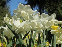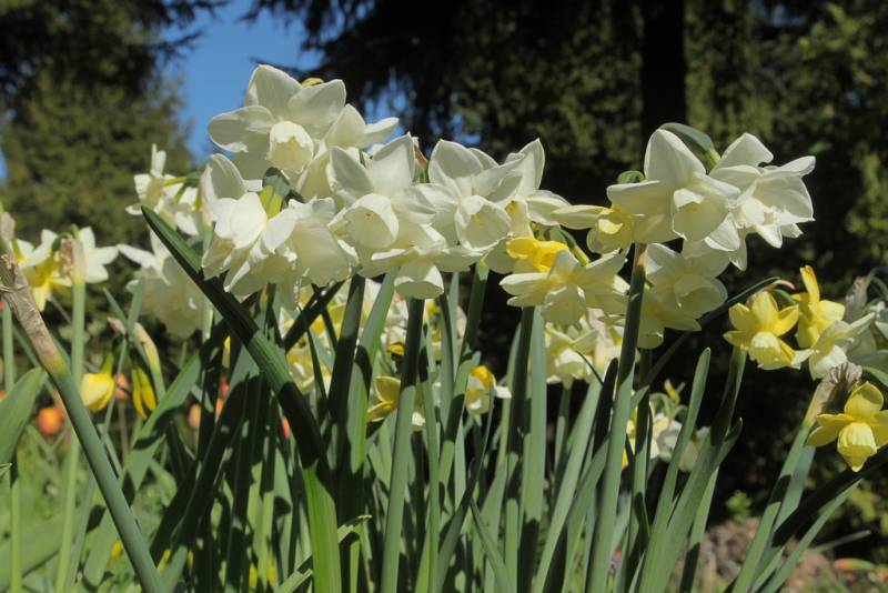 Odmiana 'Hunter Morn' została wyhodowana przez Johna A. Huntera w Nowej Zelandii, trafiła do sprzedaży w 2022 roku. Dorasta do 25-30 cm wysokości, kwiaty w początkowej fazie rozkwitania są jasnożółte, potem szybko wybarwiają się na kremowo-biały kolor i takie pozostają aż do przekwitnięcia. Narcyz kwitnie dość obficie, kwiaty zebrane są po 2-5 na szczycie każdej łodygi. Liście są długie i proste z delikatnie niebieskawym odcieniem.