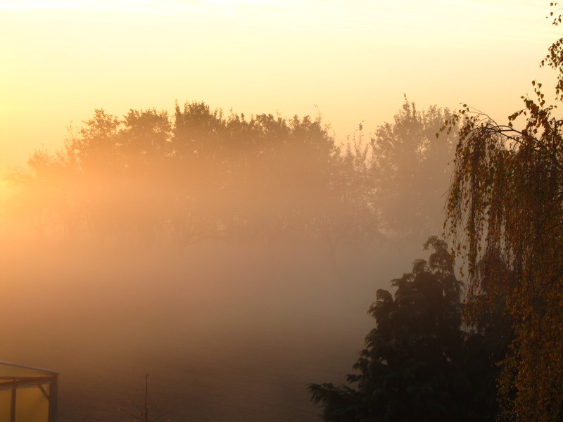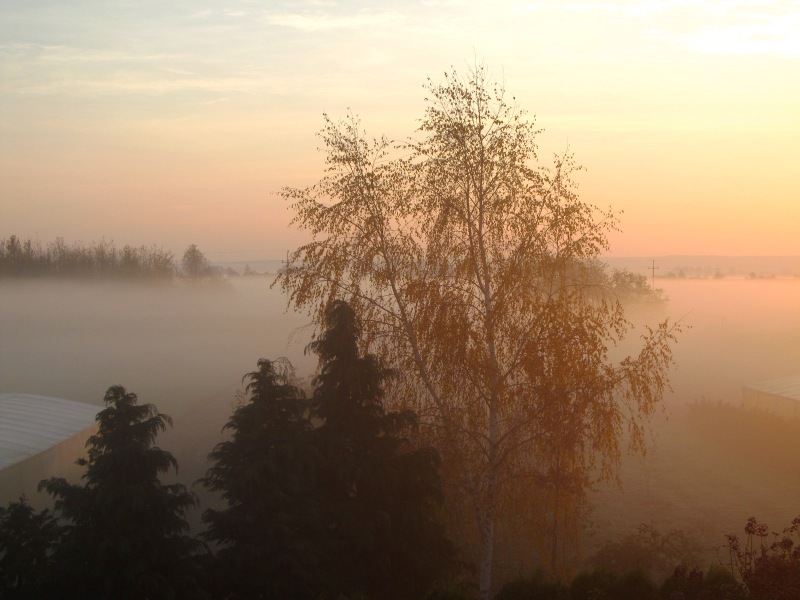 Mgły, niżej zawieszone słońce, złoto-rude refleksy, odbicia pożółkłych liści w kałuży? To Twoje klimaty?