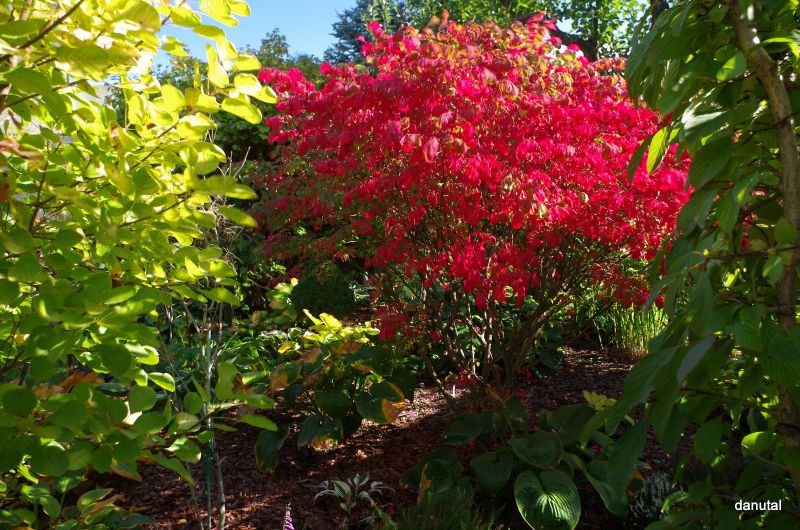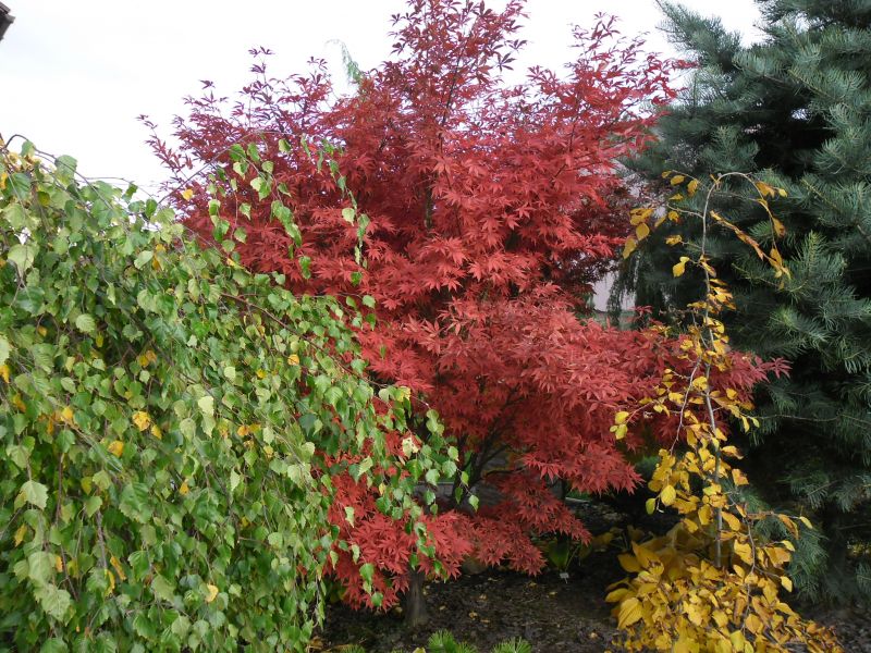 Najładniejsze jesienią są kloniki palmowe , japońskie i wszystkie te z Dalekiego Wschodu , azalie japońskie i kaliny . A jeszcze irgi , grujeczniki , ambrowce , dęby i dużo by jeszcze wymieniać :)
