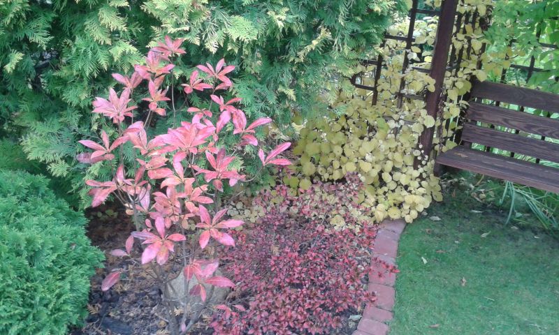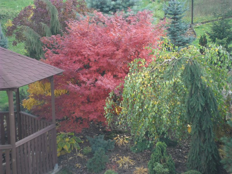 U mnie tak jakoś dziwnie, dopiero żółci się jesionek (a powinien już dawno być złoty) a klonika tojadolistnego dopadło jesienisko na całego. :blink: