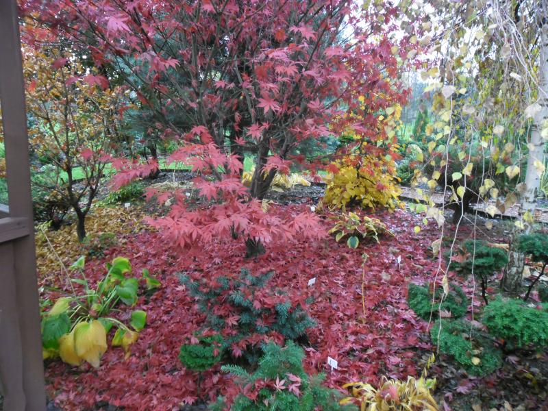 I już całkiem jesiennie.Czerwone dywany z klonów palmowych.