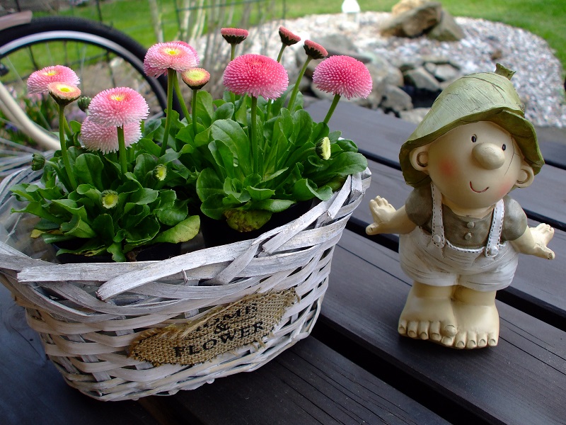 Nowinka w tym roku coś mnie wzięło na stokrotki. Już kilka donic nimi obsadziłam.
