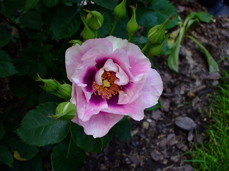 zanetatacz rodek jest bardziej w odcieniu fioletowym. Zdjęcia trochę przekłamują kolor. Jest cudny i jak większość roślin u mnie bezimienny.