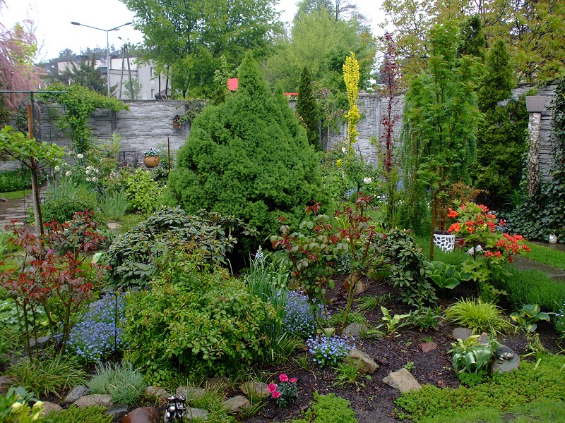 edulkot prawdopodobnie mój znienawidzony "betoniak" powoduje, że w ogrodzie jest trochę cieplej a na pewno zaciszniej. Cieszą mnie bardzo kwitnące kwasoluby. Dają po oczach kolorami ale od tego jest wiosna, żeby było kolorowo.