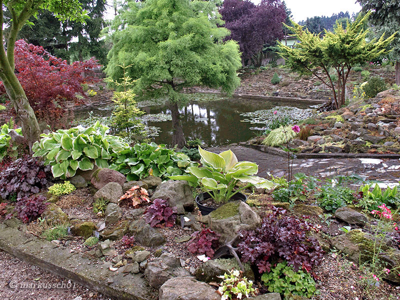 Tutaj też możną zobaczyć sporą reprezentację roślin cieniolubnych, takich jak: hosty, żurawki itp.