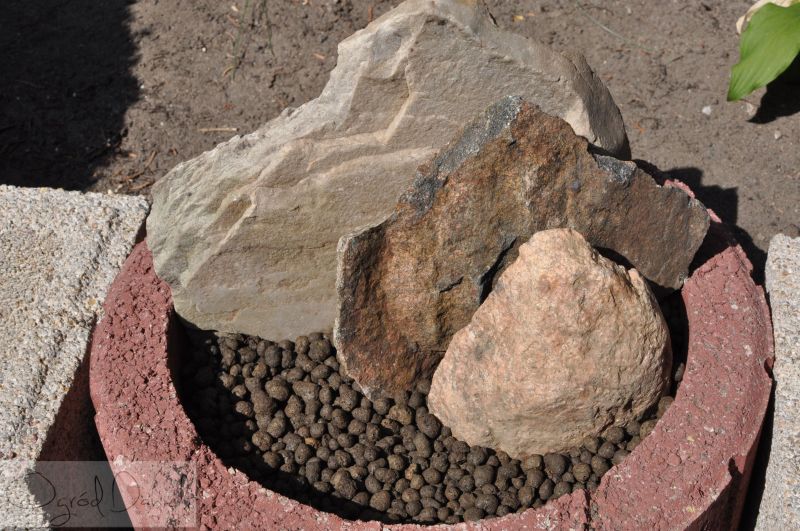 Widać, że keramzyt (warstwa ze 2 cm) znajduje się wszędzie wokół kamieni