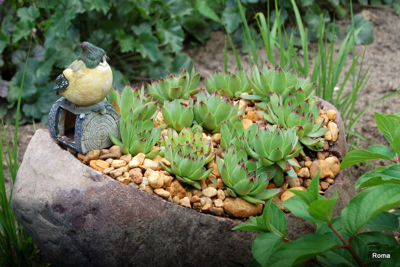 Sporo braci ogrodniczej, nie dysponującej już miejscem w ogrodzie, próbuje podjąć wyzwanie powiększenia jej przez donice, kotły, wanny i tysiące innych uzytkowych przedmiotów, które pierwotnie nie miały mieć niczego wspólnego z ogrodem. Zazwyczaj nasadza sie w nich własnie wszelakiej masci roślinki skalne, gdyż są niewielkie i nie mają duzych wymagań co do gleby i jej wilgotności.
