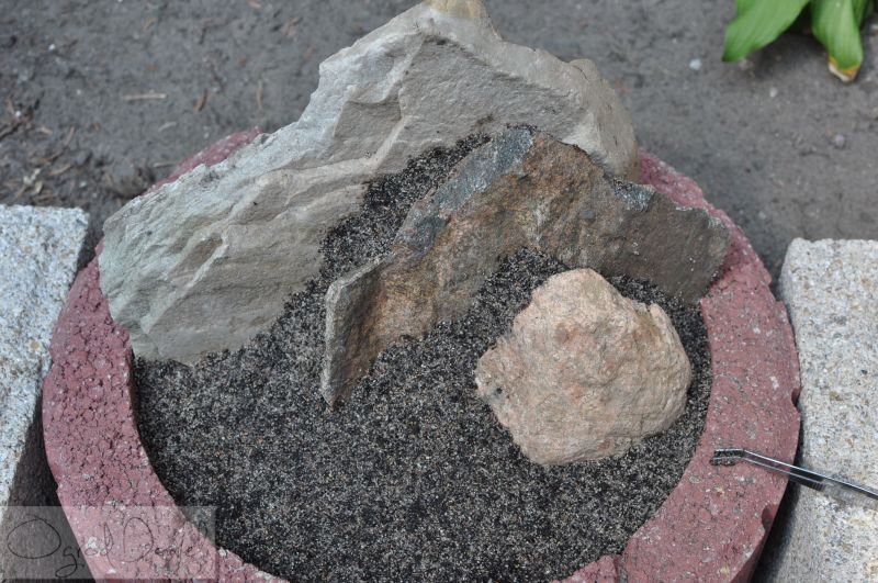 Widać, że keramzyt (warstwa ze 2 cm) znajduje się wszędzie wokół kamieni