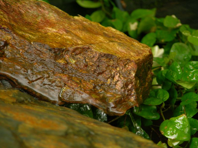 Świetny wątek! Pozwolę sobie i ja dodać grosik od siebie :-) W moim ukochanym, niesistniejącym już ogrodzie miałam oczko otoczone dwoma warstwami podkładów kolejowych, o głębokości ok. 1.40m, wystarczającej by zimowały w nim ryby, a dwa sezony nawet żółwie czerwonolice. ALe chcę Wam powiedzieć o doborze kamieni do oczka. Wymyślałam sobie, że chcę mieć w rogu oczka kaskadę, bo szum wody, bo napowietrzanie oczka dla ryb (i braku glonów!), bo to świetne poidełko dla ptaków, bo super pije się kawę siedząc na brzegu oczka i słuchając plusku wody. Zatem postanowiłam nabyć kamień. I tu niespodziewanie dosyć wykazałam się sporą przezornością (to rzadkie u mnie ;-)). A mianowicie w sklepie z kamieniami (mimo, iż wydawało mi się, że już widzę jaki kamień mi się podoba i jaki na pewno kupię) kupiłam po jednym kamieniu z prawie 10 różnych rodzajów. I okazało się to najmądrzejszym co mogłam zrobić! Albowiem mokry kamień wygląda zupełnie inaczej niż suchy (niby oczywista oczywistość!). A do tego musiał współgrać z kolorem drewna podkładów kolejowych! I w ten oto sposób okazało się, że najładniej pasował łupek rudo-złoty.