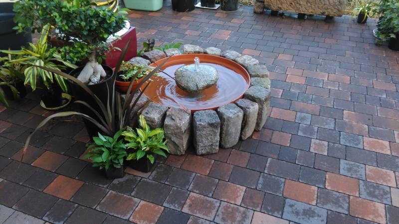 A to takie ciurkadełko zrobione z okrągłej wkopanej kasty budowlanej, obłożone kamieniami i zasilana mini pompą wodną-obieg wody zamknięty.