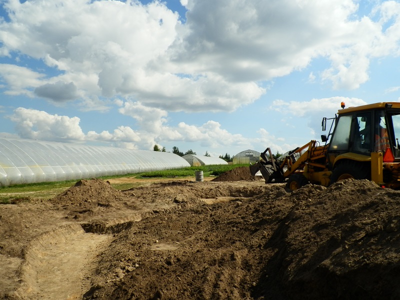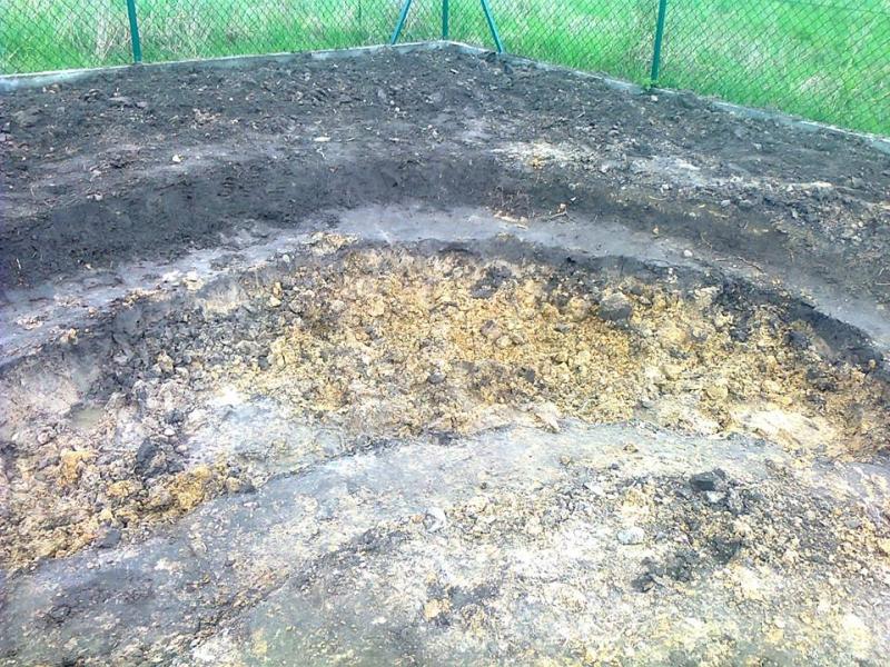 Gotowy wykop należy oczyścić z kamieni, korzeni i innych ostrych przedmiotów a następnie można lekko podsypać przesianym piaskiem lub wyłożyć włókniną lub flizeliną jak na zdjęciu poniżej.