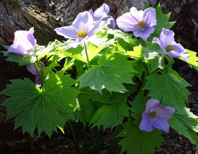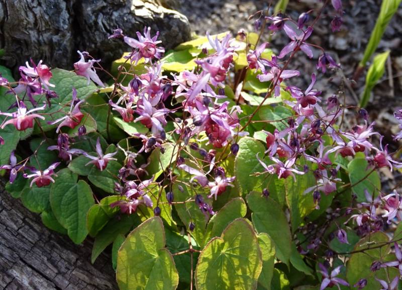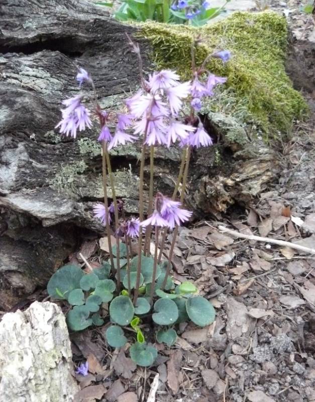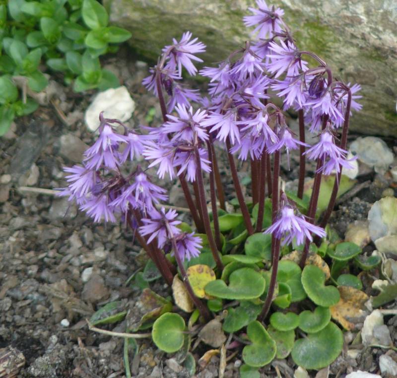 Co to za roślinka z fioletowymi poszarpanymi, kwiatami i kępką okrągłych listków? Śliczna…