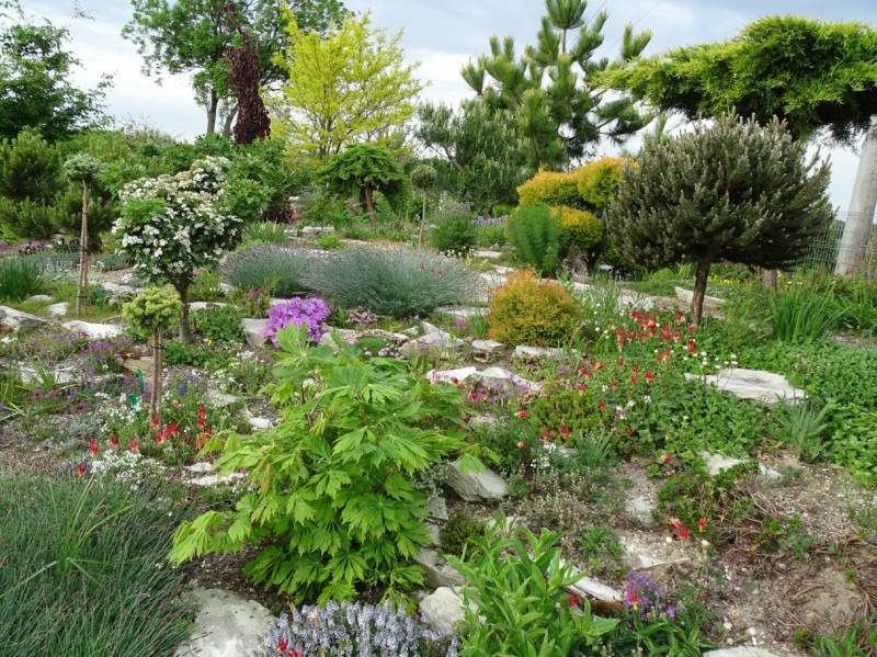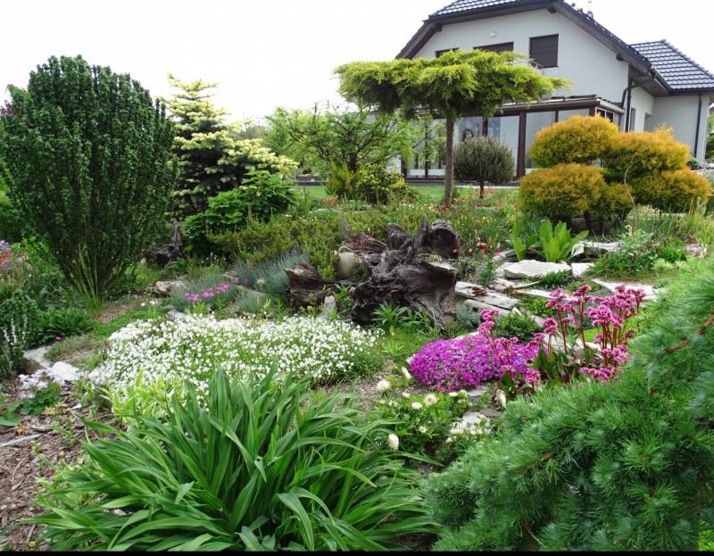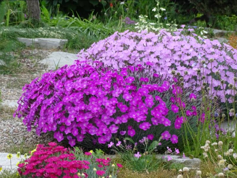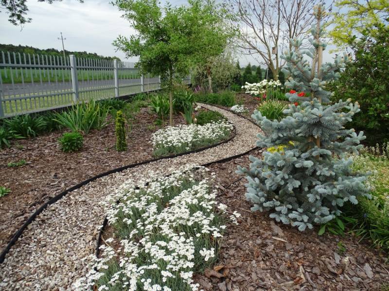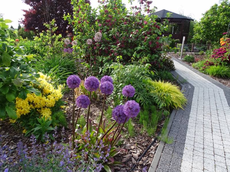 Kamienne ścieżki wśród kwiecistych rabat
