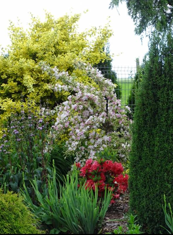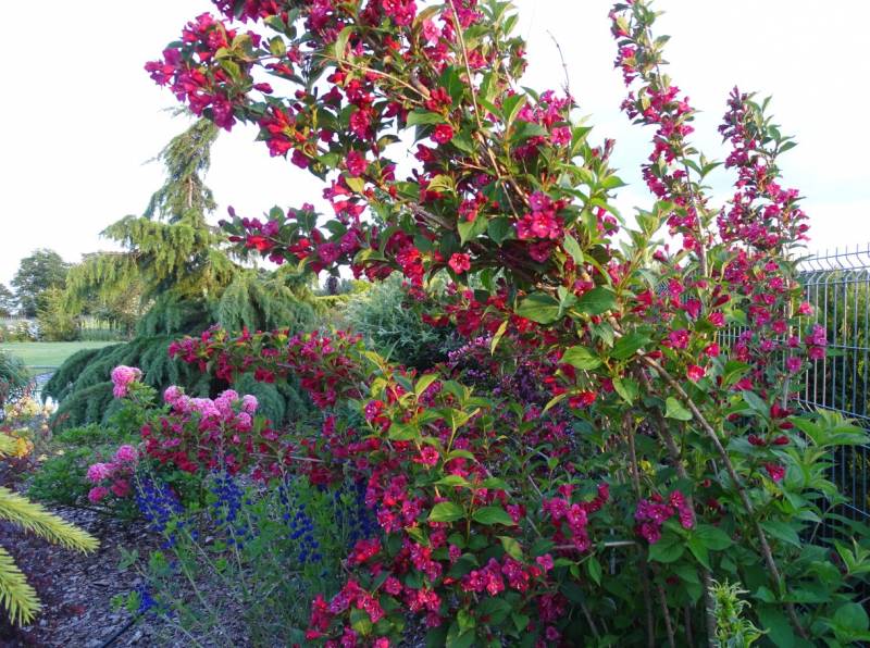 Jurku, jakie tam cuda :nie_wiem , A ten krzok to kielichowiec wonny "Hartlage Wine" zakwita wcześnie, obficie i długo kwitnie.