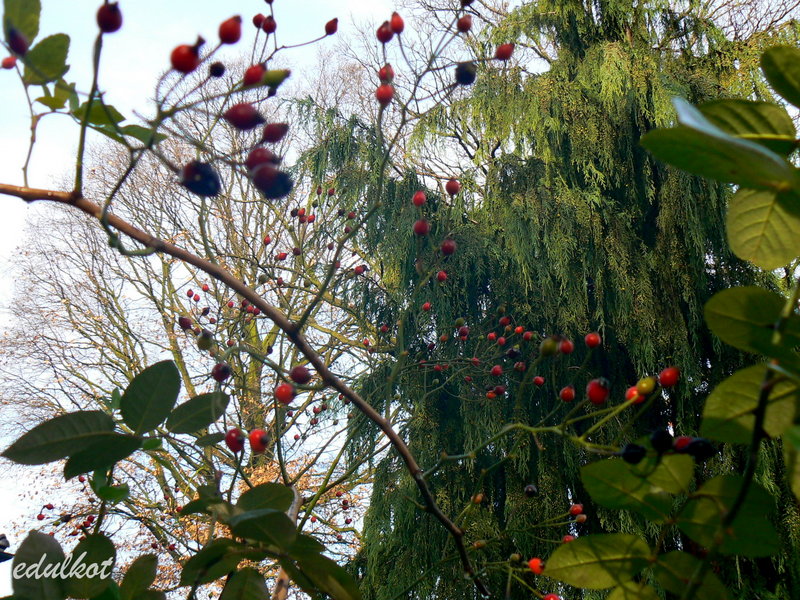 Sporo róż ma ładne owoce choć bardzo dużo już przejrzało i spadło. Jakimś cudem Gipsy Boy nie była przycięta i ma bardzo dużo czerwonych owoców