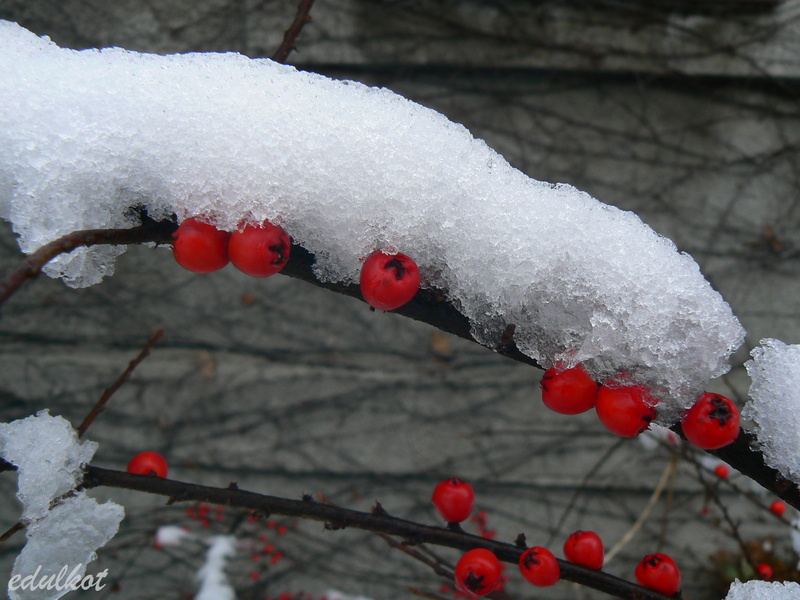 Dośnieżyło czymś takim mokrym przygniatając co się dao do gleby, niektóre rośliny nawet ładnie wyglądały, a owocki nabrały uroku.