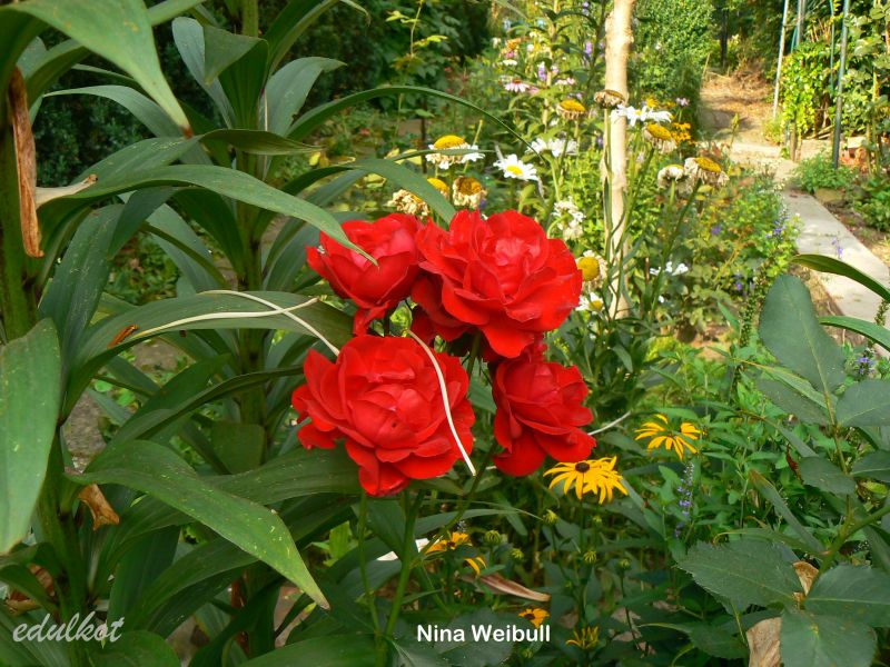 Róże a właściwie wszystko w koło nich dostało drugą dawkę nawozów jeszcze w czerwcu, a tym słabeuszom i resztkom po zaschniętych sypałam nawóz na rozrost korzeni na początku lipca, jeszcze nie widać żeby która chciała wracać z zaświatów