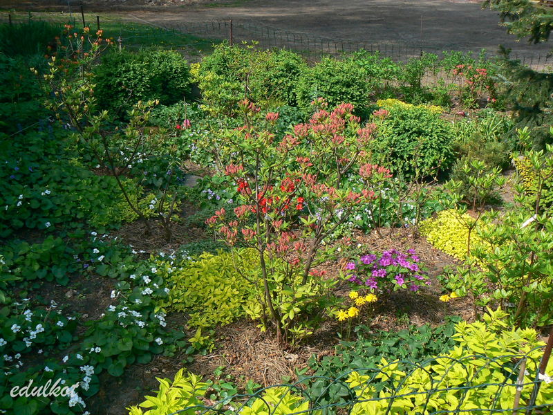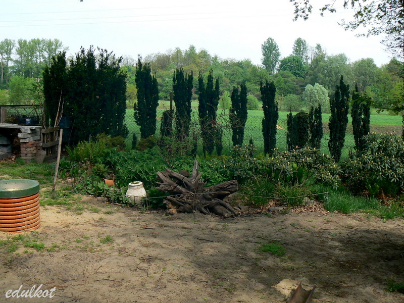 Efciu to miejsce od lat ma potencjał, a po wybudowaniu domku trochę się zmieniło jego oświetlenie, myślałam że będzie więcej cienia, a tu domek tak daleko cienia nie rzuca, drzewka (1 głóg, olbrzymi jałowiec i buk) trzeba było usunąć i zrobiła się patelnia :slonko dobrze że stare rodku nieźle znoszą takie słońce. Właśnie zaczynają,