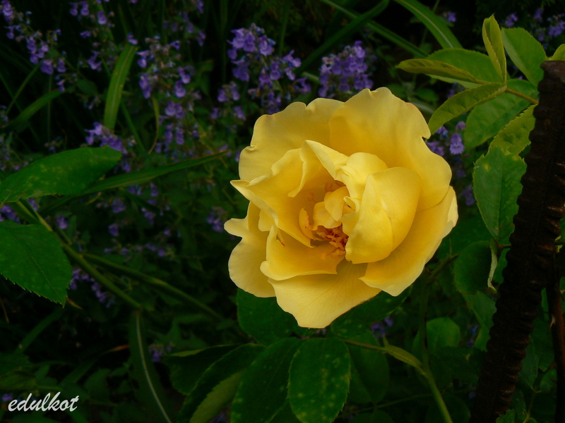 Na cmentarzyku czworonogów pierwszy spoczął Goldi i na jego cześć posadziłam różę Golden Wings :spacerek , potem spoczęły tam koty i pachnie im kocimiętka :kot