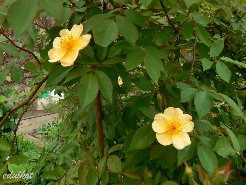 Zuziu moja Fruhlingsgold młodziutka ale dzielnie zawiązała sporo pączków, które teraz albo rozkwitają albo spadają podcięte przez kwieciaki B)