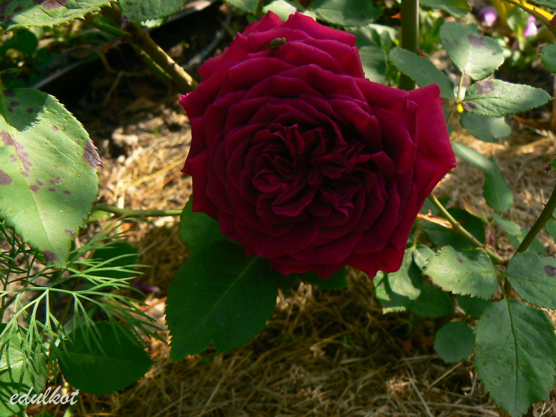 Dla pamięci taki widoczek - przypieczony kwiatuszek róży Empereur du Maroc