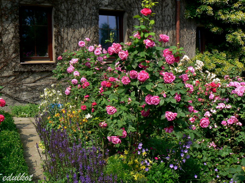 E! Mi też kwitną róże, ale se też poklaszczę! :bravo Bardzo Cię podziwiam za tą ilość i dbałość o róże! Fajnie masz posadzone i wkomponowane w ogród i inne rośliny. Najpiękniejsze widoki to te ze ścianą strego domu, mega klimatyczne!