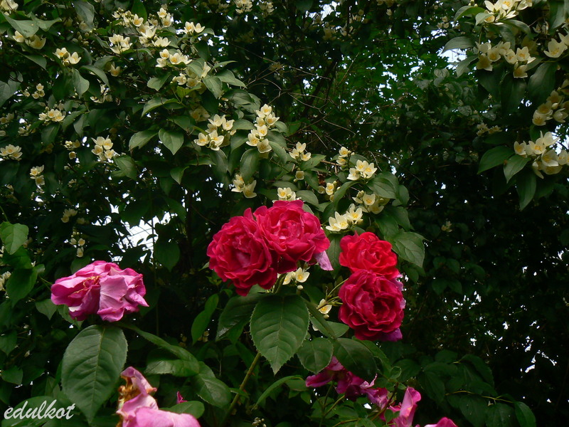 jaśminowiec z różą Prinz Hirzeprinzchen