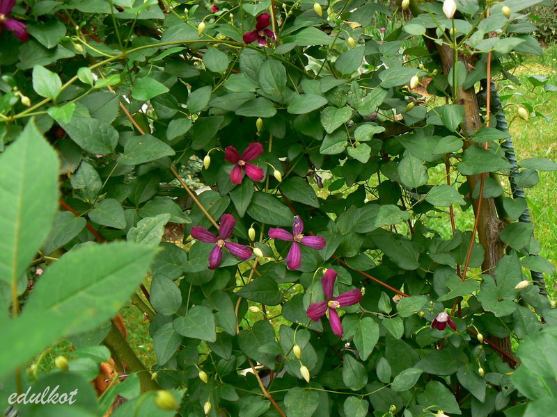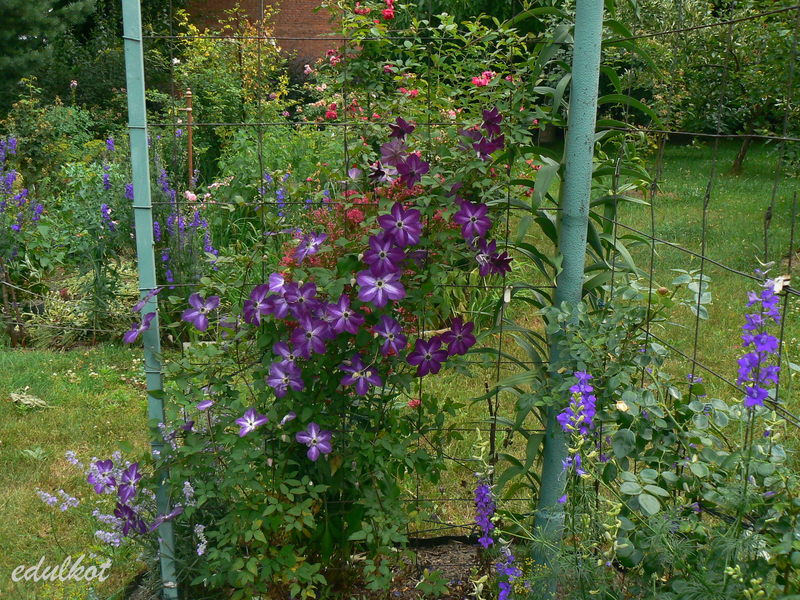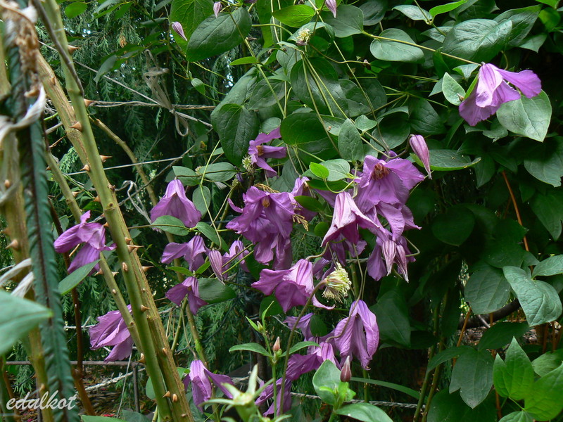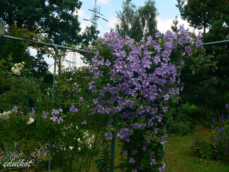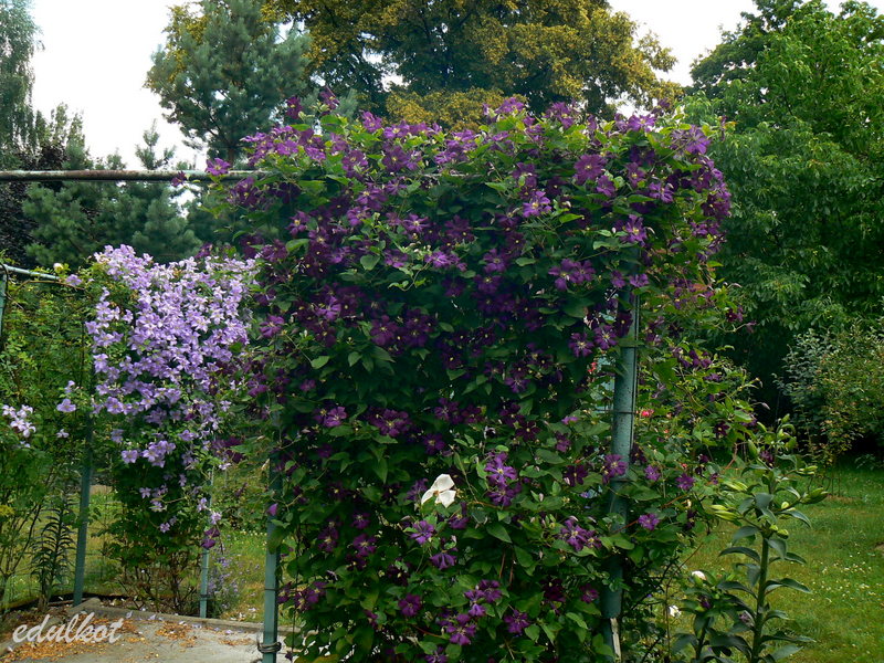 I nie przywiozłaś mi powojnika? Ukorzenionej sadzonki? Mam miejsce! Na tym kikucie po uschniętej wiśni! Kondzio mi uświadomił, że warto pod powojnik ją wykorzystać. O! Może być Oberek albo Emilia Plater! White Prince Charles? think: Bo z tych fioletowych mam dwa: Mikelite i Polish Spirit. PS jest akurat u mnie szalony i co roku obrasta słup energetyczny i skrzynkę gazową.