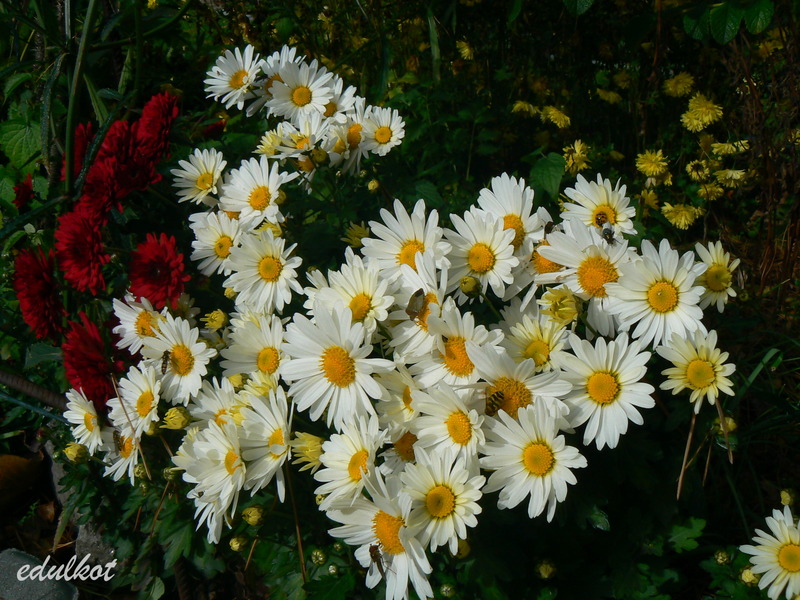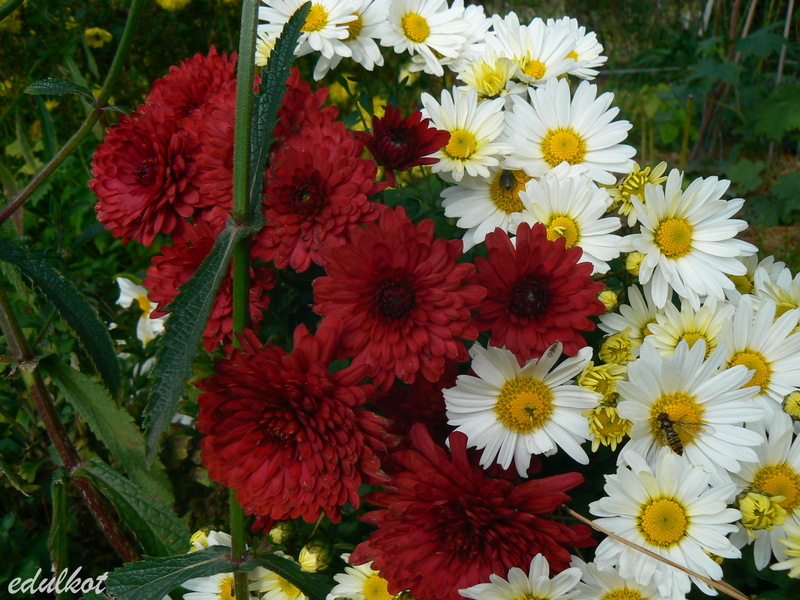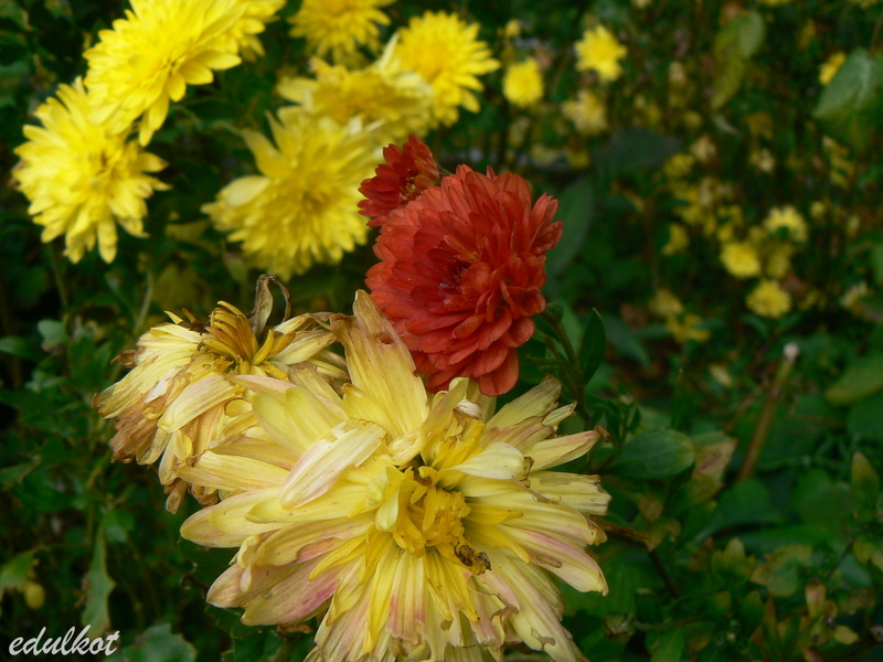 Ojej, jak pięknie, kolorowo i radośnie vishenka U nas też dzisiaj paskudnie, zimno i deszczowo. Tą ostatnią, liliową chryzantemę mam i ja... chyba, bo to NN :)