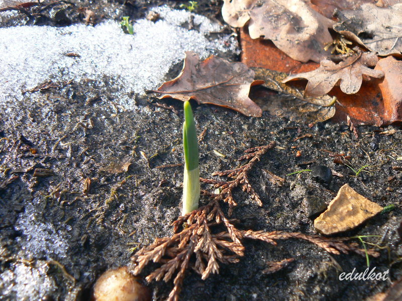 ja na razie wypatrzyłam przebiśniegi i krokusy ,a dzisiaj 4+ stopnie i śnieg prawie zniknął...to może coś jeszcze się pokaże