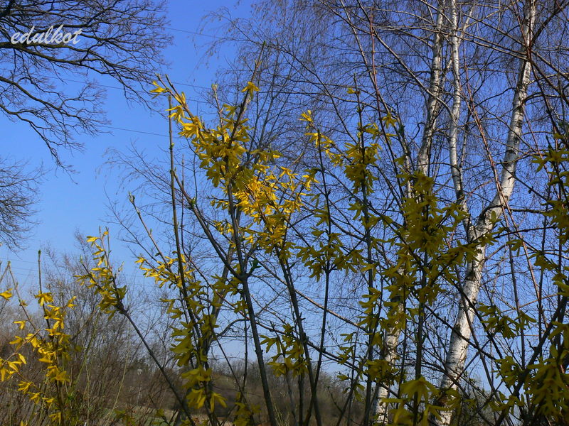 Forsycja kwitnie a ja z różami ciągle w lesie