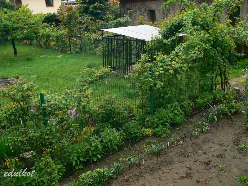 jeszcze bardziej w prawo czyli na zachód króluje klatka dla Mili ( jak koniecznie trzeba ją zamknąć, kiedyś pokażę jakie roślinki ona uprawia w środku rotfl ) i stary dom