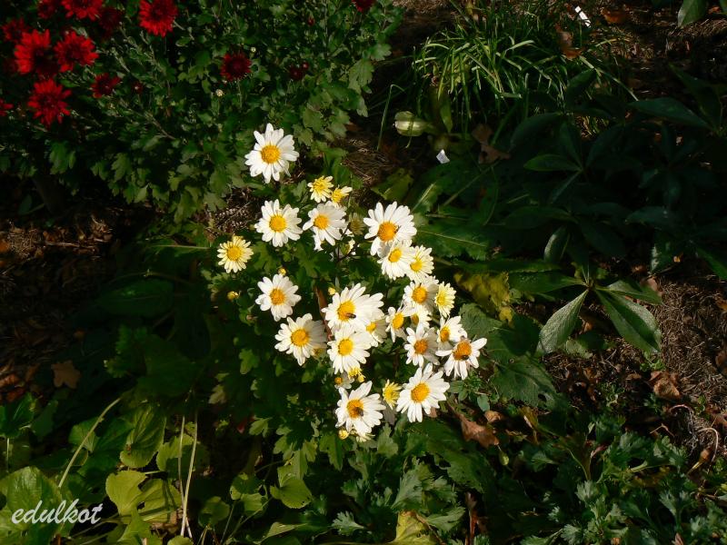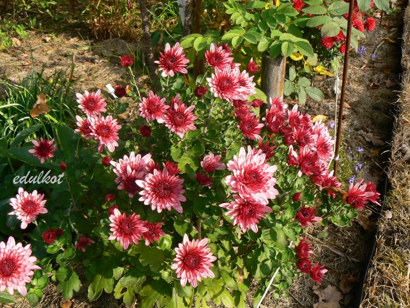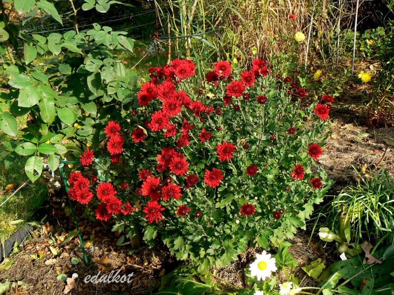 Staram się każdego roku zbierać z cmentarza w listopadzie ciekawe chryzantemy i niektóre ładnie rosną w ogrodzie, np biała i czerwona.