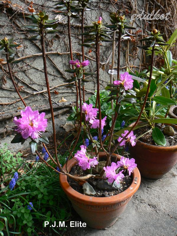 Rododendron P.J.M. Elite przyszedł w słabej kondycji, miał sporo pączków, ale wyraźnie od góry zaczynał zasychać, dolne pączki rozkwitły po czy cały usechł w ciągu paru dni :placz