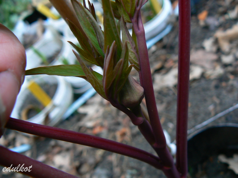 Może tak mało kolorowo ale z nadzieją na kolor, pączuś piwonii drzewiastej Dark Red