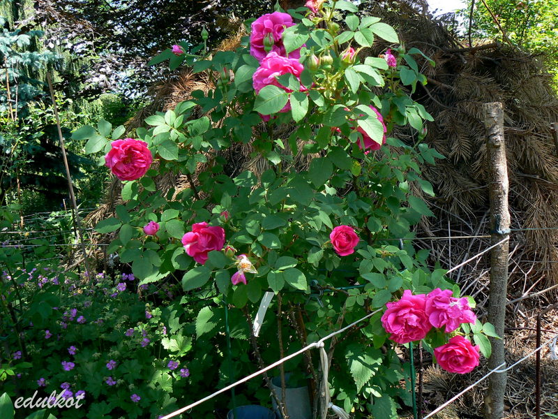 Na tych kawałkach róże rosną właściwie bez problemów, no może te, które z każdym rokiem są coraz bardziej przykrywane sosnową koroną, np Souvenir de Yeddo, którego muszę podlewać podczas dłuższych bezdeszczowych okresów.