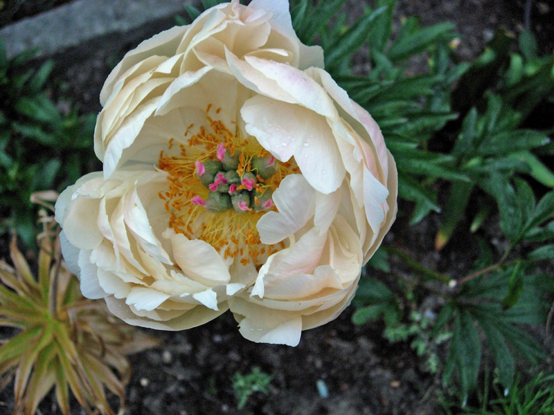 Mam jeszcze peonie, które mam nadzieję, że zakwitną w przyszłym roku - jedna - perłowy, świetlisty róż, budowa kwiatu jak u stulistnej róży (pachnąca); druga (znacznie późniejsza) jasny róż z przebłyskami ciemnego różu - pachnąca, kwiat wielkości piłki do nogi.