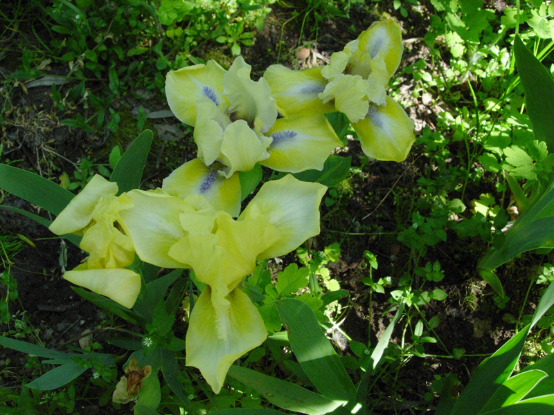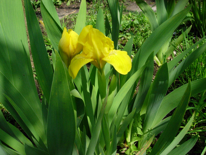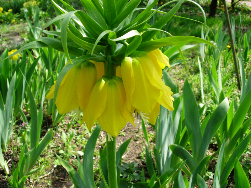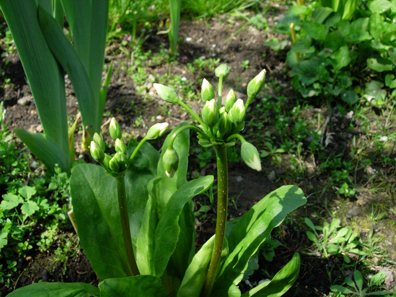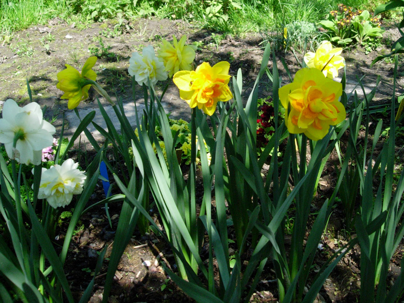 Tymczasem wiosną – proszę bardzo. Rośnie nawet ten, który w tamtym roku stracił kła w transporcie (ale jeszcze w tym roku nie zakwitnie). Natomiast cała reszta – większość po dwa pędy i stoją prosto jak żołnierze na warcie honorowej.