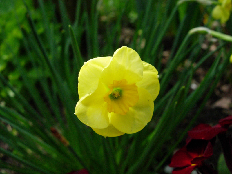 Najpierw pokażę najostatniejszy (czyli drugi) kwitnacy u mnie ciemiernik – tamtegoroczny nabytek. Patrzyłam wczoraj na ciemierniki, to tak zmężniały, a kilka, co to myślałam, że zniknęły zaczyna wydobywać się z niebytu. Martwi mnie tybetański, bo ma tylko jednego listka. Może go więcej podsypię ziemią kompostową (może z popiołem?). Jesienią nasypię na niego zrębków, niech go zasłonią przed ptasimi pożeraczami wszelkich roślin, a zwłaszcza młodych pączków. Te potwory wykończyły mi hiacynty między różami.
