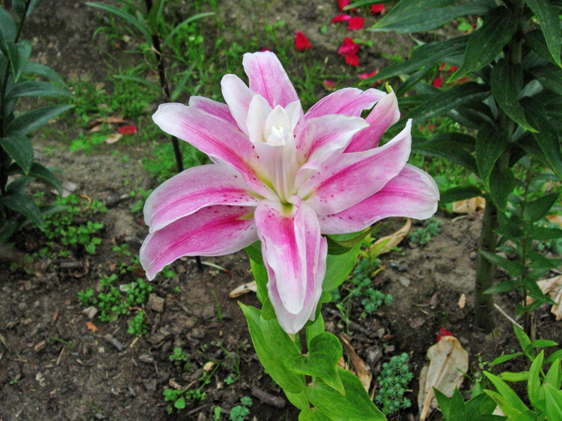 lilii lankongense. Cebulka est jeszcze mała i nie wiem czy ją zostawić, gdzie jest, czy przesadzić w lepsze miejsce. Chyba ją jednak zostawię, bo inaczej nigdy nie będę pewna jakie środowisko jej pasuje.