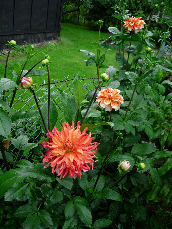 Wiesiu, mam dużo więcej dalii niż planowałam, ale takie piękne. Sporo z nich posadzone jest przy siatce i to je wspiera, poza tym mam jeszcze dalie posadzone w dwóch grupach (za gęsto, bo posadziłam w trzech rzędach ale brak mi było doświadczenia, bo mama dalii nie uprawiała).