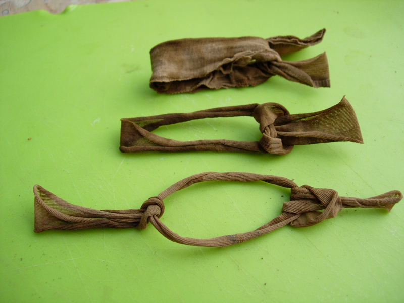 Ja to do podwiązywania stosuję stary maminy sposób. Postaram się w weekend zrobić poglądowe zdjęcia. Otóż sama (oraz córka jest zobowiązana) zbieram zużyte skarpetki rajstopowe i rajstopy. Mam je w torebce, dużo miejsca nie zajmują. W razie potrzeby (a wykorzystuję je do różnych celów) sięgam tam ręką i tnę na około centymetrowe paski, nie przecinam. Tymi rajstopowymi paskami zawiązanymi w ósemkę podwiązuję wszystko, łącznie z różami. Gdy opaska jest za krótką - łączę dwie lub więcej razem. Takie wiązanie jest elastyczne, a jednocześnie naddaje się, gdy roślina rośnie. Później gdy nie jest potrzebne przecinam i bez żalu wyrzucam - żadna strata. Dzięki łatwemu łączeniu mogę podwiązywać nawet dość odległe rośliny. Mam więc kilka palików (różnych) i tak podwiązuję.