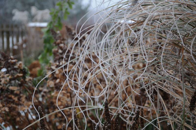 W tych zimowych okolicznościach przyrody próbowałam wiązać trawy i kopczykować róże zmarzniętym kompostem :glupek . Bo od przyszłego tygodnia ma być całodobowy mróz, więc nie ma na co czekać.