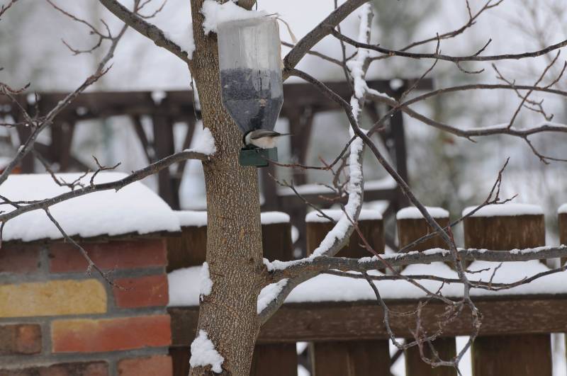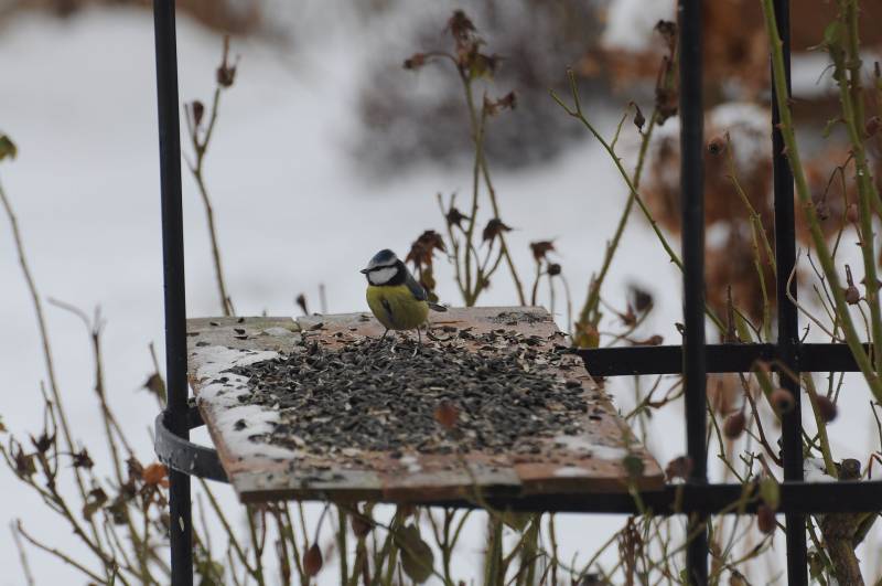 . Mam ten sam problem, największy "karmnik", to po prostu deseczki ułożone na pergoli i ciągle muszę stamtąd śnieg zgarniać
