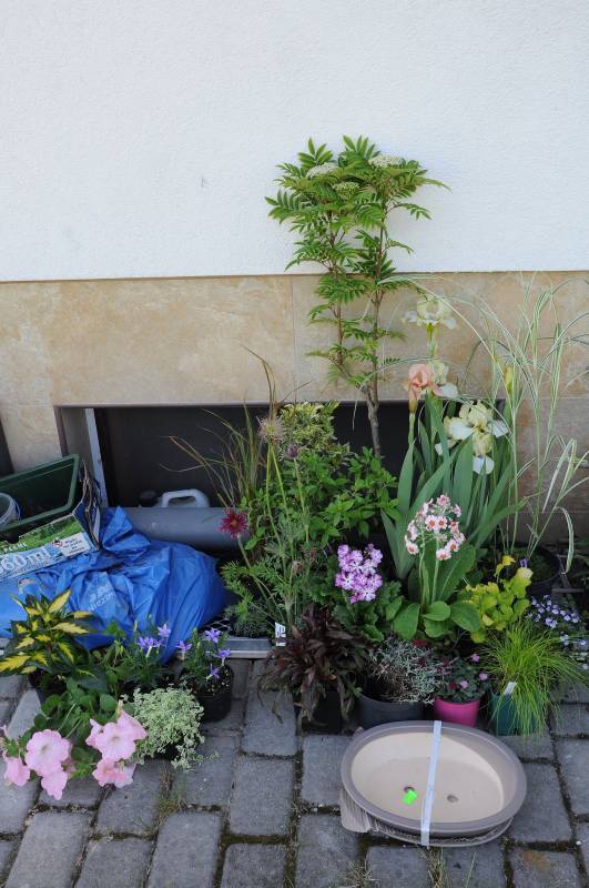 , bez czarny 'Madonna' na zastępstwo wymarzniętego, hortensja też na zastępstwo, jakiś mikołajek żółty, jakiś goździk, dwa pierwiosnki, śmiałek 'Tatra Gold', sasanka papageno pełna wiśniowa, gaura coś tam velvet, jakiś przetacznik płożący i jeszcze takie coś małego, podpisane było, ale zapomniałam