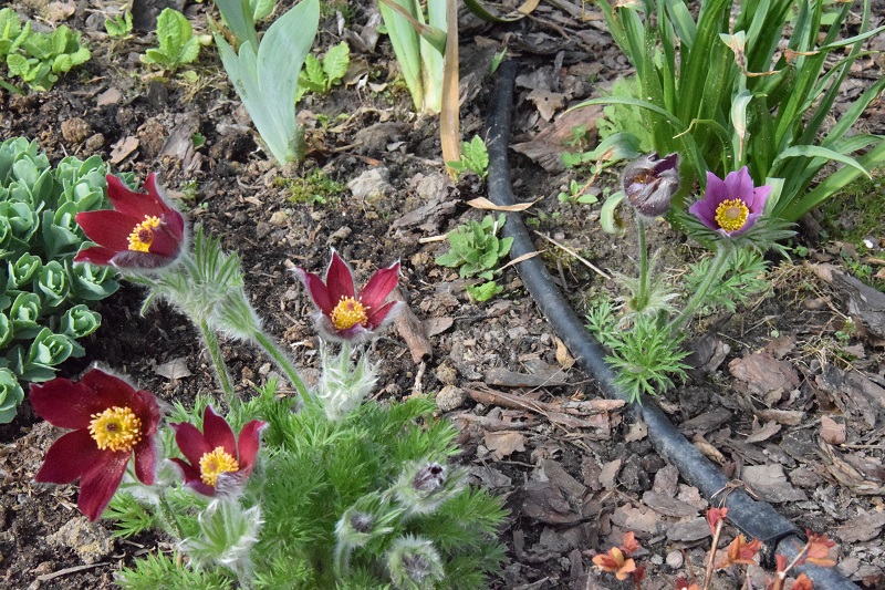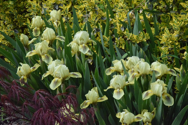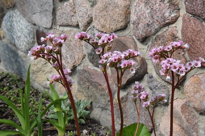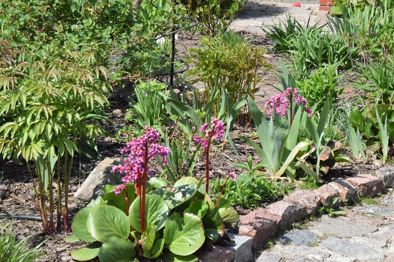 Efciu, 'Persy Wiseman' po 10 latach ma osiągnąć wysokość 120 cm a 'Goldkrone', którego posadziłam nieco z przodu 80 cm. Irysy, które zakwitły to najwcześniejsze, niskie. Moje odmianowe bergenie wciąż kwitną, choć widać, że będą kończyć (sprawdziłam przed chwilą, że pierwsze kwiatki wypatrzyłam 10 kwietnia):